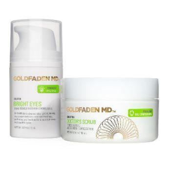 This exclusive duo of Goldfaden MD's bestsellers offers a daily ritual designed to polish, balance and provide a more luminous and youthful glow to all skin types. Visibly brightens the eye area. Buffs and removes dead skin. It includes doctor's scrub 1.7 fl oz / 50m, bright eyes 5oz / 15ml.