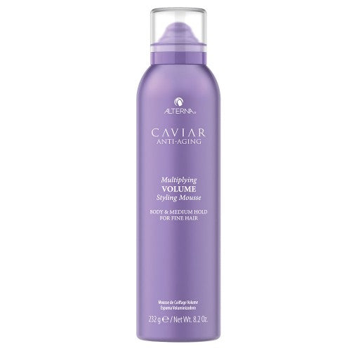 Alterna Caviar Anti-Aging Multiplying Volume Styling Mousse is a lightweight styler that is clinically proven to thicken and strengthen your hair. This body building formula adds big volume and just the right amount of texture to hair, to create the perfect voluminous style. Formulated with Alterna's signature Caviar Extract and our volume building Marine Plumping Complex, this formula helps strengthen hair to restore its natural thickness and reduce breakage. This formula plumps up and lifts hair for structure without stiffness or stickiness. Clinically proven to provide hair with added volume.