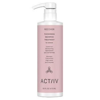 Recover Thickening Cleansing Treatment for women. Target hair loss and hair repair in men and women using new biotanical technology for maintaining and improving hair density and health. Over time using Actiiv Scalp and Hair show increased hydration and skin and scalp health. Use only 3 times a week, 5 minutes per use.